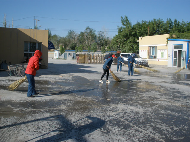 由于廣合公司是一個(gè)水泥攪拌站,灰塵特別大,只要開(kāi)工,每天廠(chǎng)區內外就被蒙上一層的水泥,粉煤灰和灰塵。為了確保廠(chǎng)區的清潔衛生,往年都是從外面招聘的清潔工來(lái)打掃衛生,自黨的群眾路線(xiàn)教育實(shí)踐活動(dòng)開(kāi)展以來(lái),廣合公司的女同胞們,她們本著(zhù)厲行節約的原則,從小事做起,自愿承擔起了打掃廠(chǎng)區、過(guò)道和衛生間的衛生的任務(wù),不論工作有多忙,她們在不耽誤工作的同時(shí),第一件事就是換上工作服,兵分兩路,大家帶上各類(lèi)工具,開(kāi)始掃院子,打掃辦公室過(guò)道和衛生間的衛生,她們這6位女同志,每天都是從里到外,進(jìn)行了一次徹底的清掃?! ?SPAN lang=EN-US>