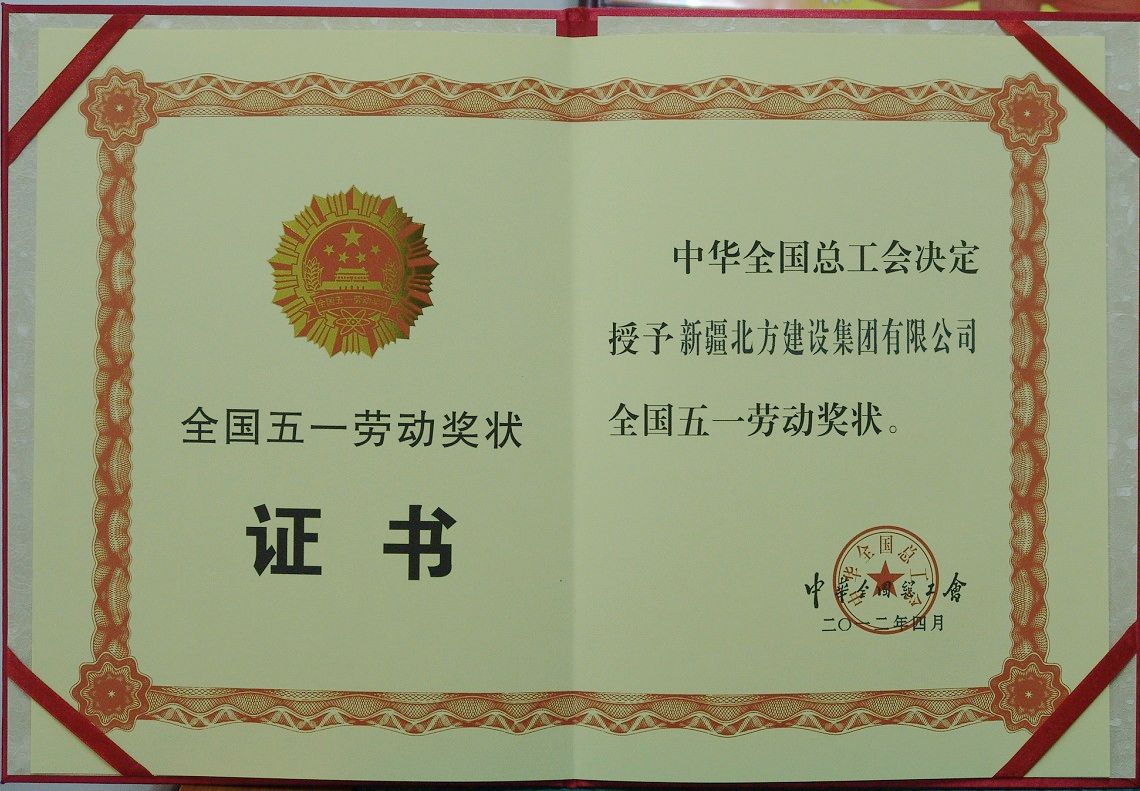 北方建設集團榮獲的全國五一勞動(dòng)獎狀證書(shū)