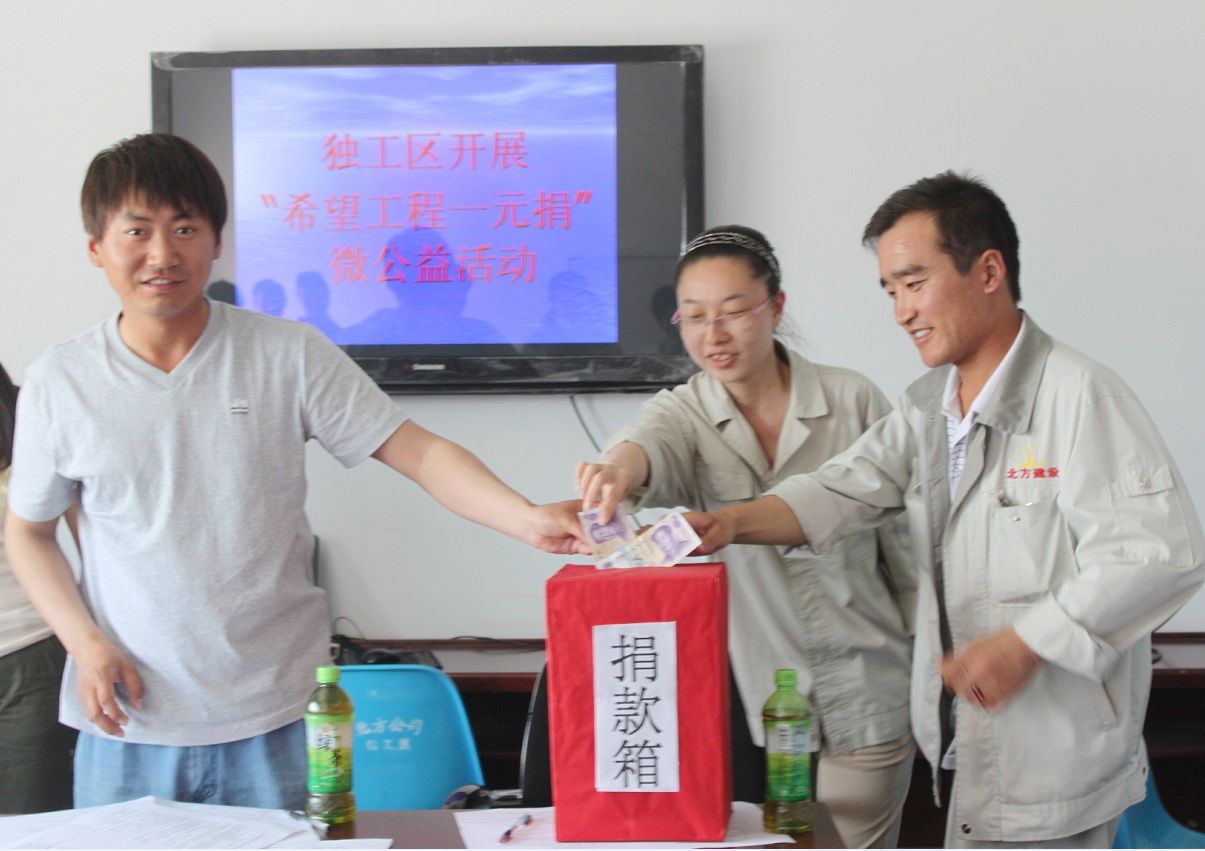 為了廣泛匯聚公益力量,籌集更多社會(huì )資源幫助貧困青少年,北方集團工業(yè)設備安裝公司引導廣大干部及青年積極參與公益事業(yè),倡導“微公益”的理念,開(kāi)展了“希望工程1元捐微公益”活動(dòng)。