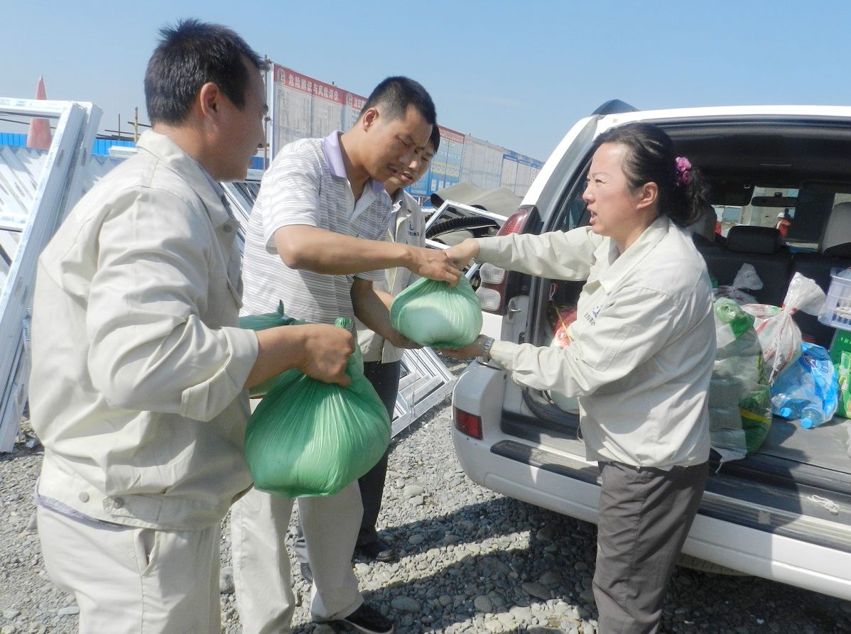 7月的奎屯,驕陽(yáng)似火,熱浪滾滾,施工現場(chǎng)氣溫高達40℃。近日,北方建設集團公司工會(huì )組成慰問(wèn)小組前往各單位建設工地,親切看望并慰問(wèn)了戰高溫、斗酷暑的一線(xiàn)建筑工人,為各施工項目部送去了一萬(wàn)多元的綠豆、白糖等慰問(wèn)品,使一線(xiàn)工人感到了一絲清涼和關(guān)懷。
