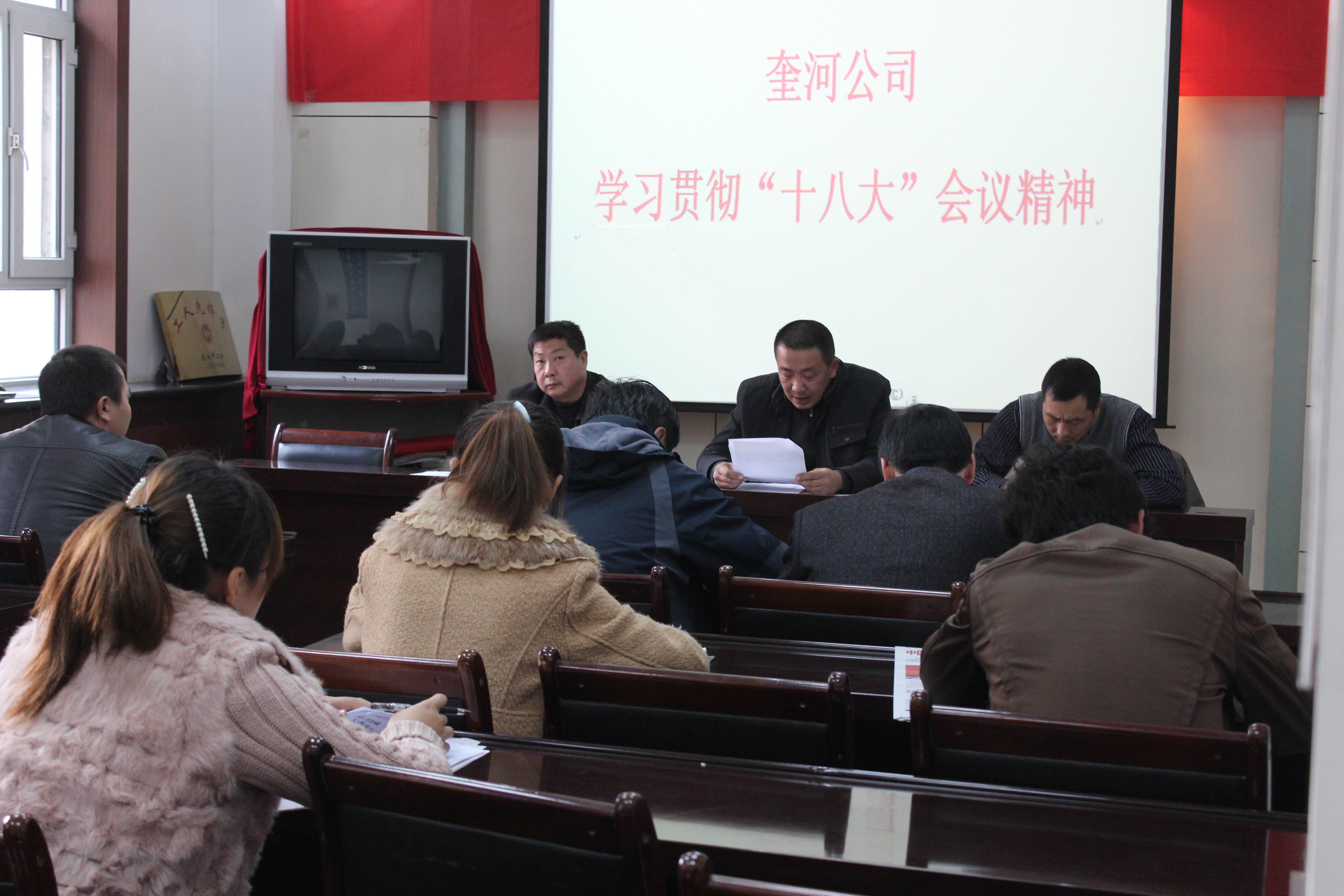 (通訊員 付宗耀 潘慶麗)11月16日,奎河公司召開(kāi)專(zhuān)題會(huì )議,學(xué)習貫徹黨的“十八大”精神。主要領(lǐng)導及業(yè)務(wù)參加了會(huì )議。副經(jīng)理李志鋒主持會(huì )議,書(shū)記付宗耀傳達了“十八大”精神,王新輝做以補充并作總結講話(huà)。
