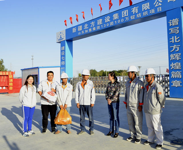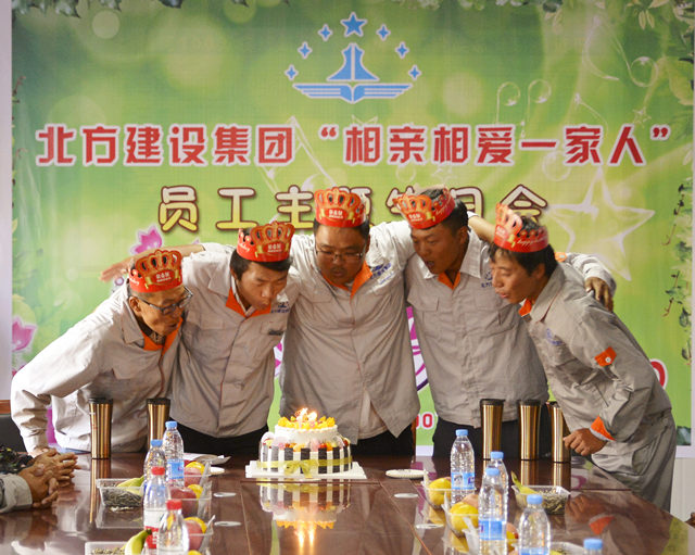(通訊員 李宇東)9月15日,北方建設集團工會(huì )主席李桂萍攜兩辦副主任孟慶忠及工會(huì )副主任王文娟一行3人,來(lái)到100萬(wàn)錠紡織項目部為5位一線(xiàn)員工舉辦了一場(chǎng)以“相親相愛(ài)一家人”為主題的集體生日活動(dòng)。