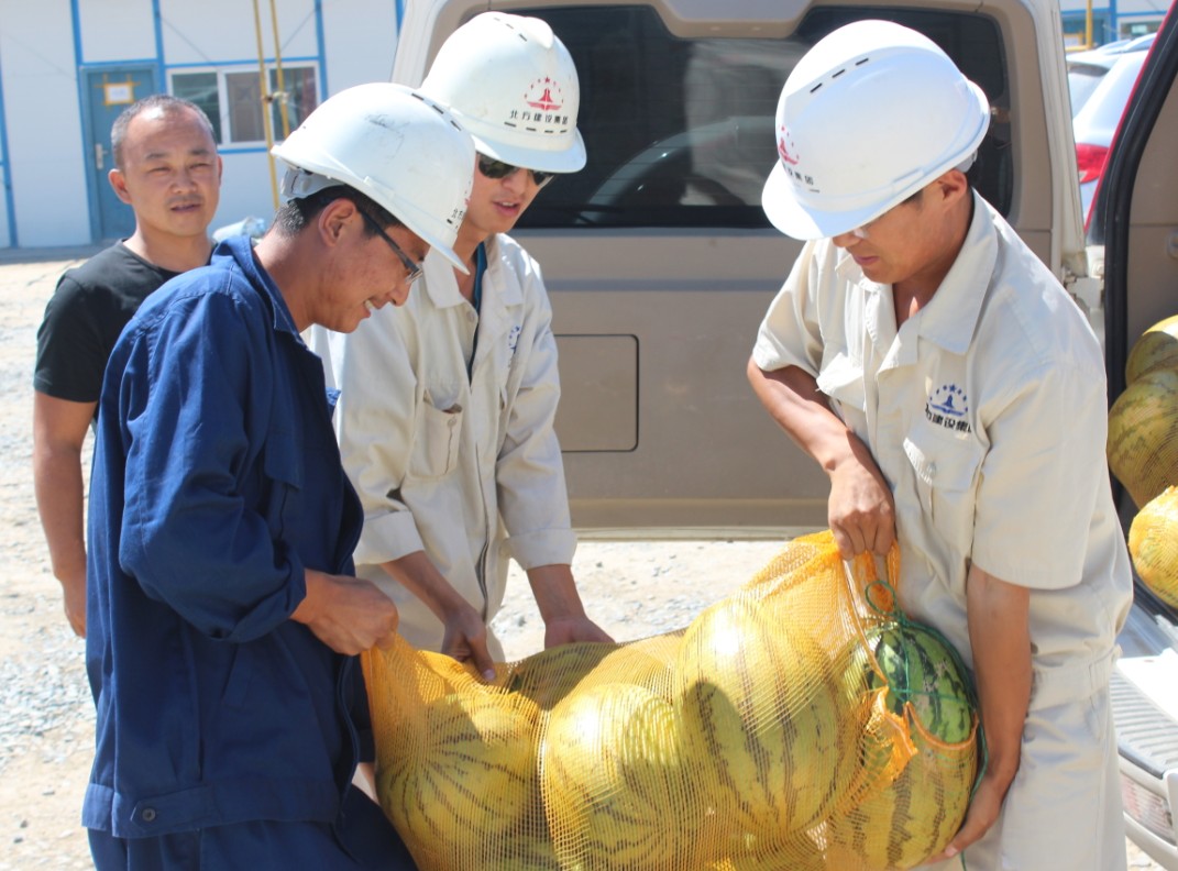 (付宗耀 潘慶麗)7月26日,北方建設集團奎河公司領(lǐng)導來(lái)到一線(xiàn)慰問(wèn)了在烈日下辛勤工作的員工,為他們送上防暑降溫的西瓜。